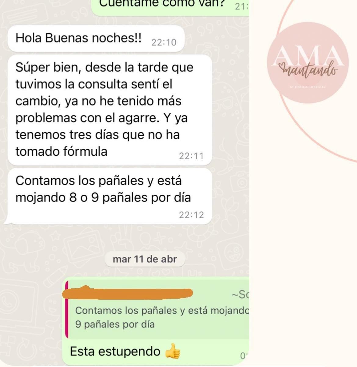 Te quería agradecer por toda tu ayuda y consejos, estaba muy asustada con esto de la lactancia, pero gracias a toda la información y consejos que compartiste en tu consulta estoy disfrutando esta etapa. Ahora estoy lista para iniciar mi banco de leche que gracias a tu taller también empezamos bien. Muchas gracias por todo y también por estar pendiente después de nuestra consulta y el taller.